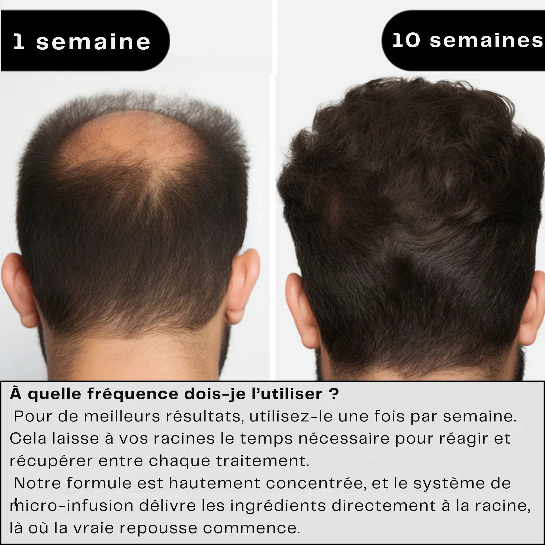 Des résultats visibles dès la première semaine, avec une repousse impressionnante en 8 à 10 semaines